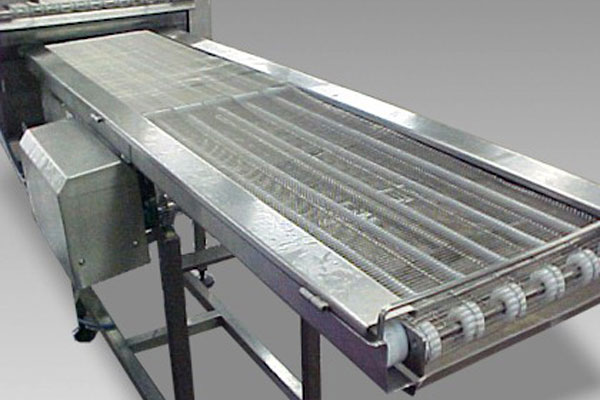 不銹鋼網(wǎng)帶輸送機系金屬網(wǎng)帶輸送機的一種,采用金屬絲編制的網(wǎng)帶為載體,兩側(cè)加裝鏈條中間用穿銷連接,采用鏈輪傳動鏈條從而使網(wǎng)帶沿鏈條傳送方向而運動;也可以直接用特制的包膠輥筒來直接帶動網(wǎng)帶動作,前者一般適用于物料重量較重且長度較長的輸送形式,用于冷卻、吹干等行業(yè)要求的輸送,故而網(wǎng)帶密度較稀,后者一般采用較為密集的網(wǎng)帶,適用于物料較小輸送距離較短又或特殊物體的輸送,例如帶強磁性物料的輸送。重型網(wǎng)帶輸送機一般長度不超過15米,寬度不超過2米;輕型不銹鋼網(wǎng)帶輸送機長度一般不超過10米。