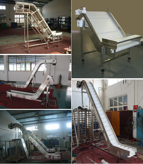 皮帶式爬坡輸送機(jī) 適用于樓層或高差間的貨物的連續(xù)輸送。傾斜角度�。�≤30°)的爬坡皮帶機(jī),在皮帶上加裝檔條、治具、裙邊等方式從而使物體能在較大的角度上作提升輸送。具有效率高、輸送快、噪音低、不間斷等特點(diǎn)。特別適合小物料的輸送,如食品、注塑件、粉末以及各種零件行業(yè)。 用于上下樓層、斜坡地形、天橋等具有高差的平面之間的物品輸送。在某些情況下可以代替升降機(jī)使用。 在輸送顆粒狀物品時(shí)為防止物品因重力滾落,每隔一段距離可以加一塊擋板。皮帶式爬坡輸送機(jī) 是在皮帶上加裝擋條、治具、裙邊等方式從而使物體能在較大的角度上作提升輸送。具有效率高、輸送快、噪音低、不間斷等特點(diǎn)。特別適合小物料的輸送,如食品、注塑件、粉末以及各種零件行業(yè)。爬坡式皮帶輸送機(jī)說明:皮帶式爬坡輸送機(jī) 是在皮帶上加裝擋條、治具、裙邊等方式從而使物體能在較大的角度上本公司產(chǎn)品運(yùn)行平穩(wěn),無噪聲,可靠性好,耐磨耐用,使用壽命長。