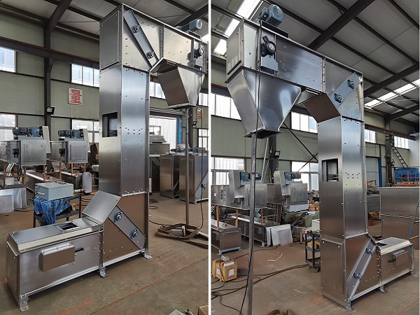 斗式垂直提升機(jī)是我司設(shè)計(jì)制作的斗式提升機(jī)系列產(chǎn)品中的一種,根據(jù)進(jìn)、出料口位置的不同而型似字母Z字得名;可以在任意位置滿足多點(diǎn)卸料的要求,其中我們又有老款和新款之分;老款設(shè)備主要應(yīng)用于提升高度在5米以下,物料種類(lèi)僅限于顆粒及小塊狀物料,由于受到機(jī)架強(qiáng)度及鏈條抗拉強(qiáng)度的限制,所以高度不宜過(guò)高;老款設(shè)備的提升量不能超過(guò)6立方/小時(shí);新款提升機(jī)既可以提升顆粒及小塊狀物料,也可以提升含粉量低于25%的混合型物料,提升高度可以達(dá)到20米,提升量20立方/小時(shí);新款Z型斗式提升機(jī)我們完全引用了先進(jìn)技術(shù),料斗采用了較老款料斗更加柔性化的設(shè)計(jì),并在原有先進(jìn)技術(shù)的基礎(chǔ)上,增加了全程超高分子導(dǎo)軌及鏈條摩擦塊,在提升高度較高時(shí)配備了逆止裝置及電子檢測(cè)裝置、斷鏈保護(hù)裝置、鏈條自動(dòng)張緊裝置,使得設(shè)備安全可靠;提升鏈條采用了精密輥?zhàn)渔�,在料斗的尺寸上延續(xù)了我們的PP塑料料斗的特點(diǎn),料斗容積有3L和8L可選;并結(jié)合防腐蝕、耐高溫等要求,可非標(biāo)定制碳鋼、不銹鋼等金屬料斗,使得我們的提升機(jī)在化工、塑料、糧食、寵物食品、膨化食品、休閑食品、再生資源、五金、化工等行業(yè)得到了廣泛的應(yīng)用