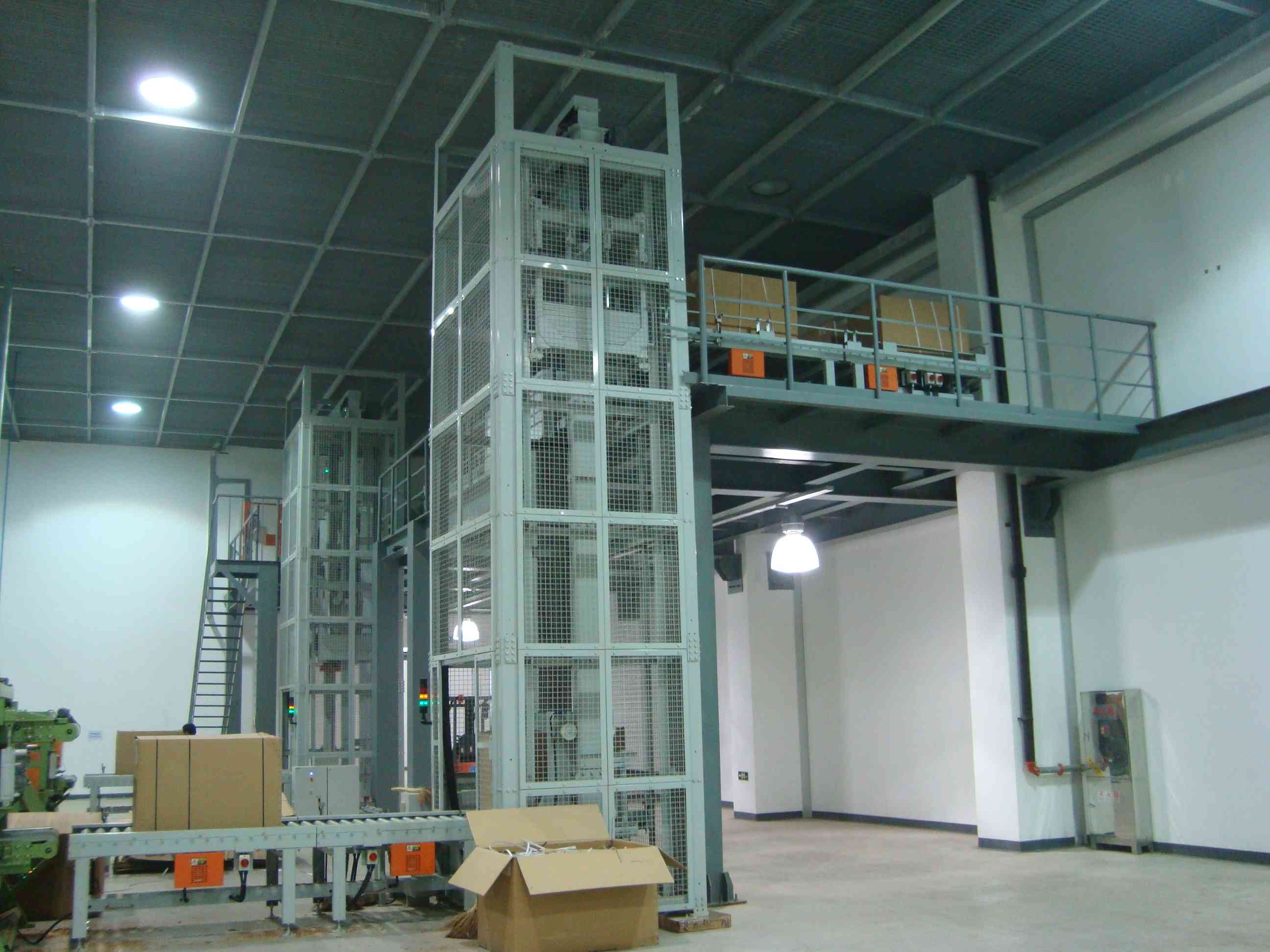 往復(fù)式垂直提升機(jī)又稱(chēng)為往復(fù)式升降機(jī)或托盤(pán)提升機(jī),是由鏈條帶動(dòng),通過(guò)變頻調(diào)速控制電機(jī),便提升轎廂上下往復(fù)運(yùn)動(dòng).提升轎廂上配有傳動(dòng)機(jī)構(gòu),以便被輸送物自動(dòng)進(jìn)入提升機(jī)的提升轎廂上。該類(lèi)提升機(jī)具有自動(dòng)化控制、性能可靠、提升轎廂定位準(zhǔn)確等特點(diǎn)。