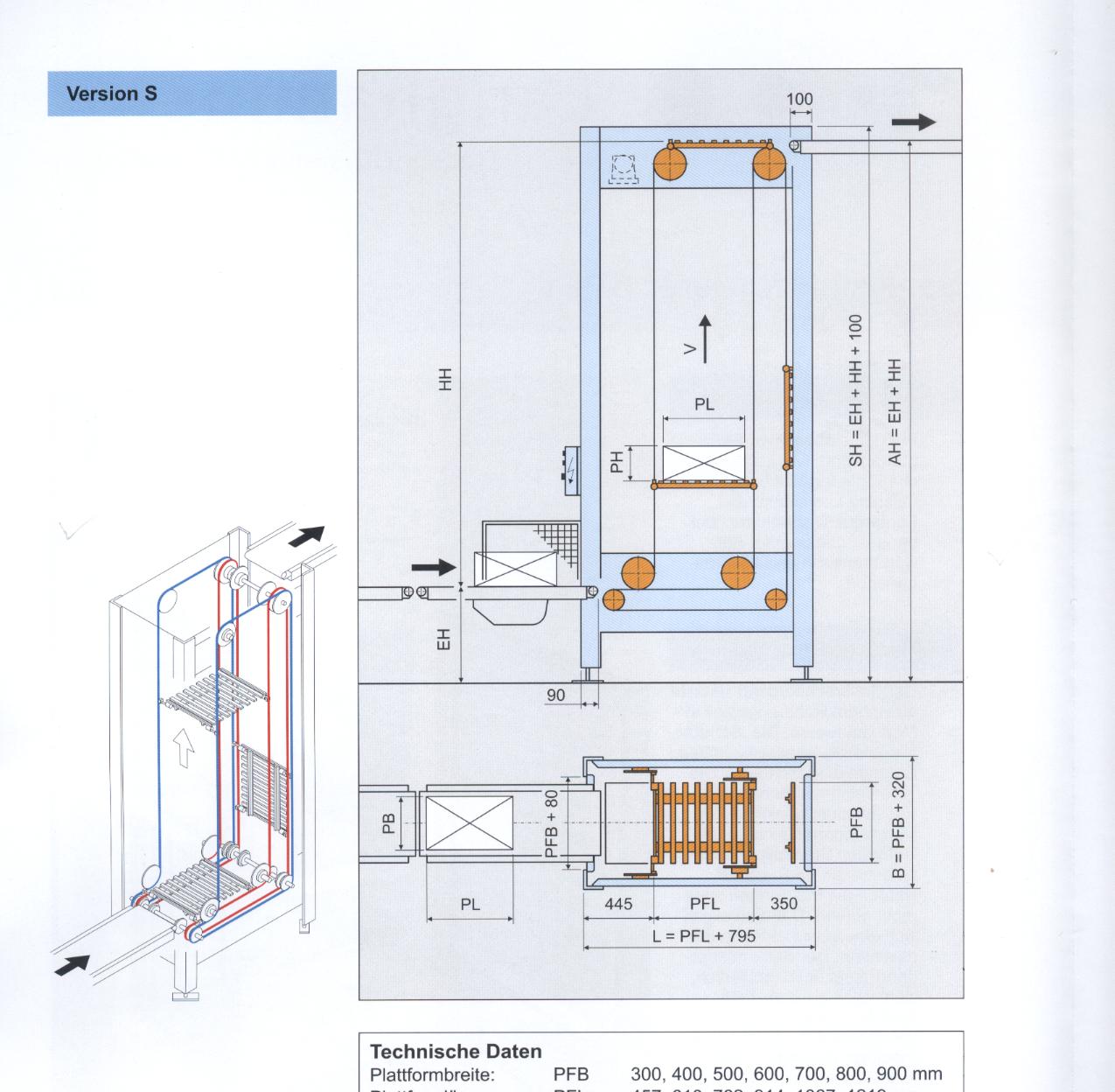 連續(xù)式托盤(pán)垂直提升機(jī)主要應(yīng)用于紙箱、塑料周轉(zhuǎn)箱、油桶、棧板等固態(tài)元件的垂直提升輸送;按照進(jìn)料口出料口的方向分為Z型垂直提升機(jī)和C型垂直提升機(jī)兩種。 Z型出入口分別位于設(shè)備的兩邊,C型垂直提升機(jī)的出入口位于同一側(cè);Z型相比較C型垂直提升機(jī)來(lái)講,提升量相對(duì)會(huì)大一些,Z型的提升速度可達(dá)30件/分鐘,C型為20件/分鐘(具體速度需要根據(jù)物體尺寸確認(rèn));提升高度可達(dá)15米,單件物品的提升重量≤150KG;